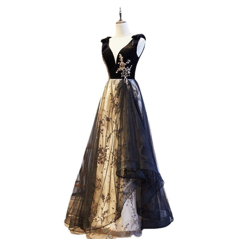 Abito da festa fatto a mano, stile Classico, con spalline e scollo a V.