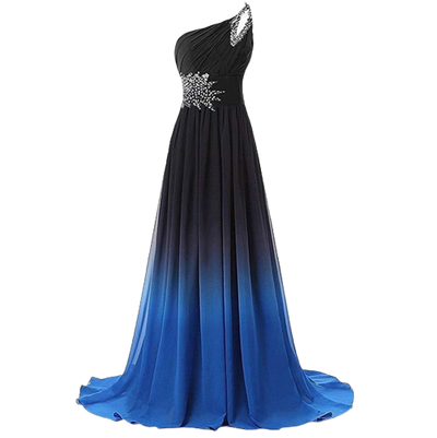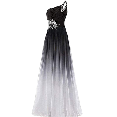 Abito da festa fatto a mano, doppio colore. Con manica a spalla e cristalli decorativi.