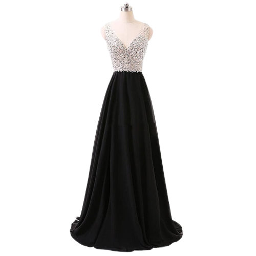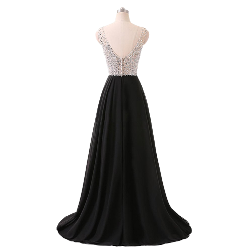 Abito da festa fatto a mano, con spalline e cristalli decorativi.