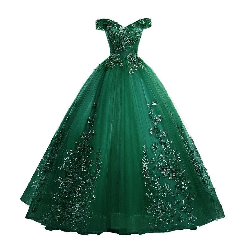 Abito da festa fatto a mano, in stile Vintage, con spalle scoperte e pizzo ricamato.