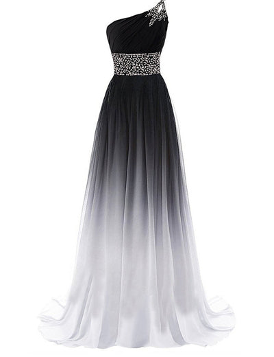 Abito da festa fatto a mano, con manica su una spalla e cristalli con paillettes per la decorazione.