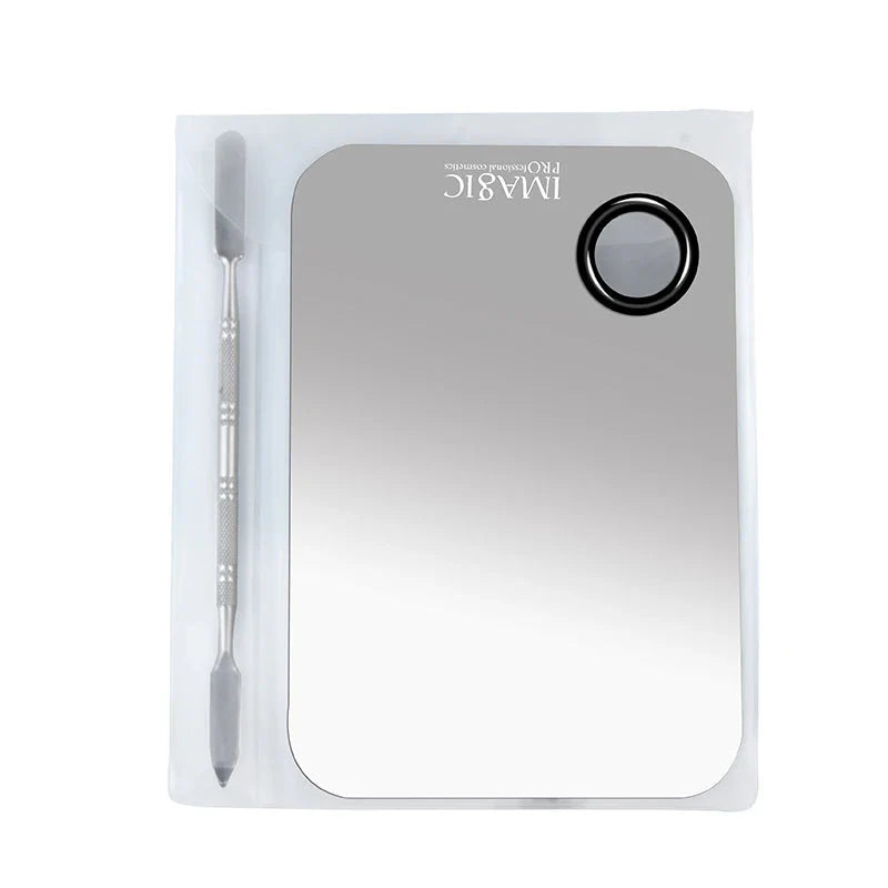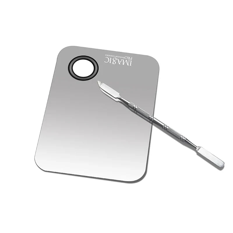 Tavolozza professionale in acciaio inossidabile, progettata per l'applicazione del body painting. Questa tavolozza rettangolare presenta una struttura resistente, ideale per la miscelazione e la preparazione precisa dei pigmenti. Ogni set include un agitatore abbinato per una miscelazione uniforme del colore. Attrezzatura essenziale per truccatori e altri artisti che cercano strumenti affidabili e facili da pulire, che resistano all'uso ripetuto e mantengano l'integrità del colore durante tutto il processo creativo.