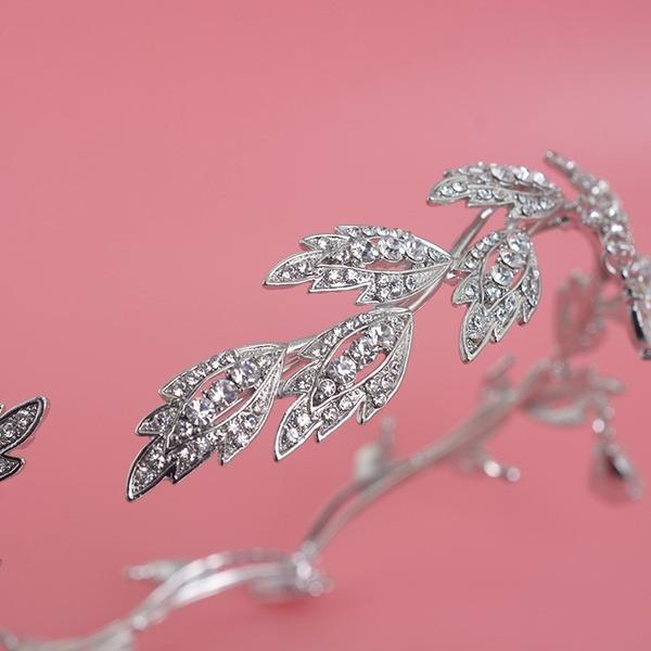 Tiara a forma di foglia ispirata all'antica Grecia con pendenti in cristalli.